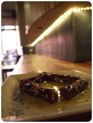 Inicio/De pinchos por Valladolid/Vino Tinto y Joven cecina con confitura de tomate Vino Tinto y Joven cecina con confitura de tomate